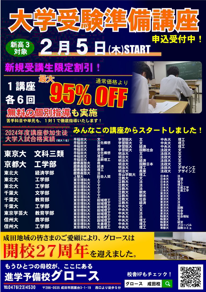 体験授業については現在実施中の日程でのご案内となります。